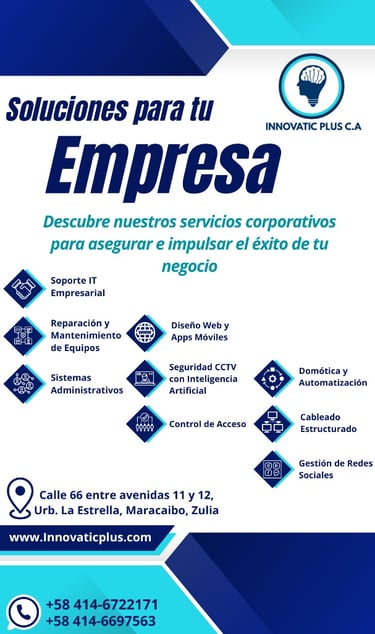 Somos una empresa confiable, reconocida por nuestra excelencia operativa, comprometidos con la innovación y atención personalizada. Con Innovatic Plus C.A, tu tecnología está en manos expertas.